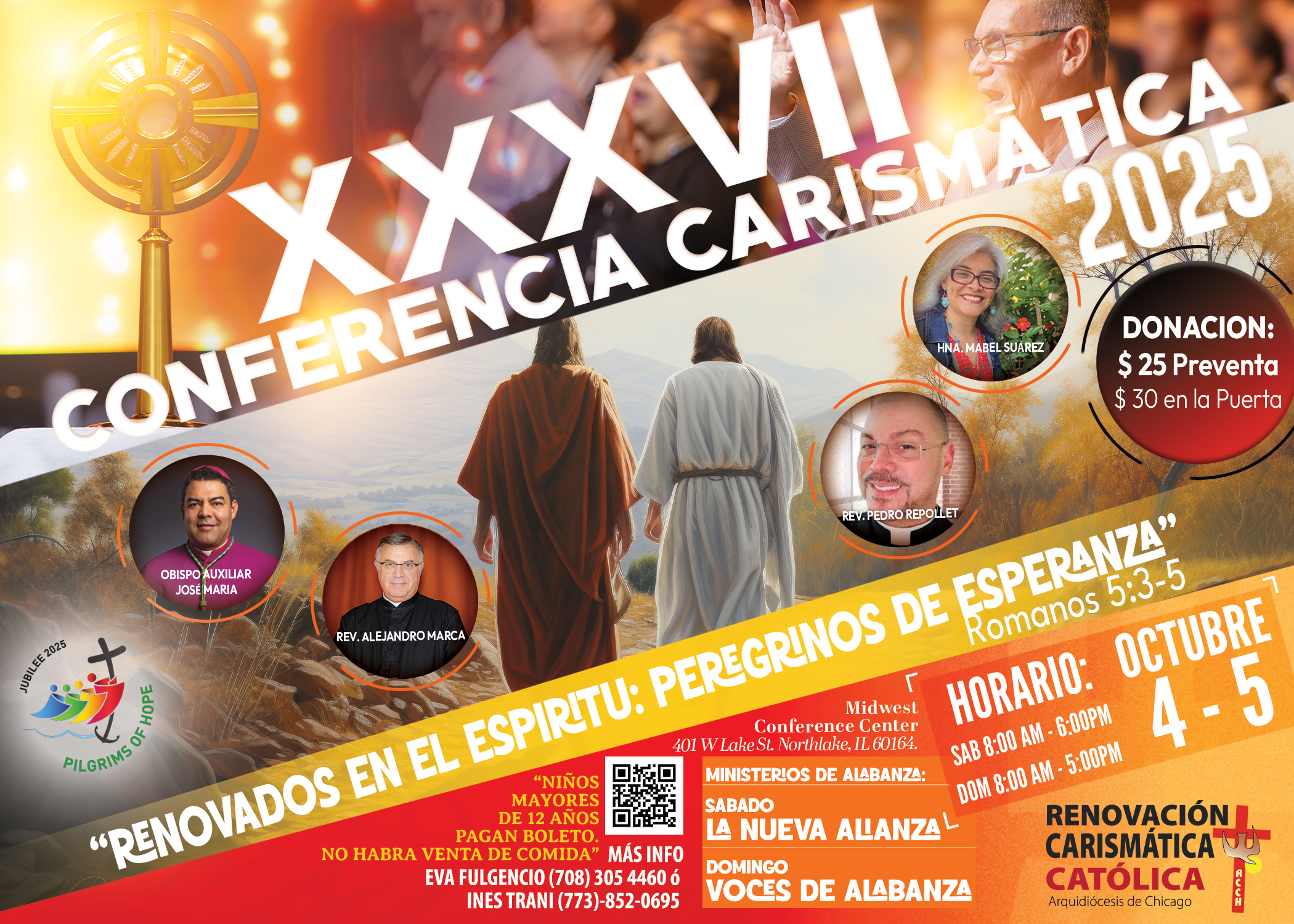 ¡Únete a nosotros en la XXXVII Conferencia Carismática Católica Hispana de Chicago! 🗓 Fecha: Octubre 4, 2025 ⏰ Hora: 8:00 am – 6:30 pm 🗓 Fecha: Octubre 5, 2025 ⏰ Hora: 8:00 am – 5:00 pm 📍 Lugar: Midwest Conference Center 📍 Dirección: 401 W. Lake St. Northlake, IL. 60164
